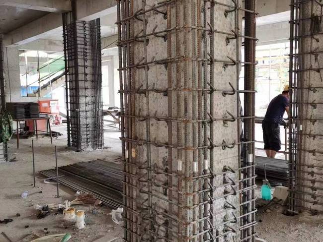4.加固梁柱:根据设计方案,对梁柱进行增大截面加固。这一步一般包括拆除原有部分混凝土、增加新的混凝土、增加加固钢筋等工作。